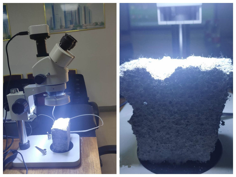 將產(chǎn)品橫斷面放在顯微鏡下觀察,內(nèi)部縫隙緊密,泡孔均勻。